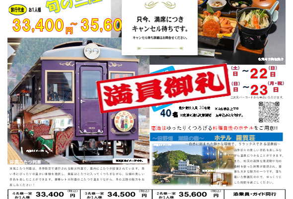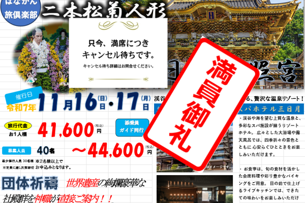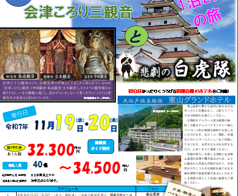 花巻観光バスでは、さまざまな主催旅行商品を取り揃えております。