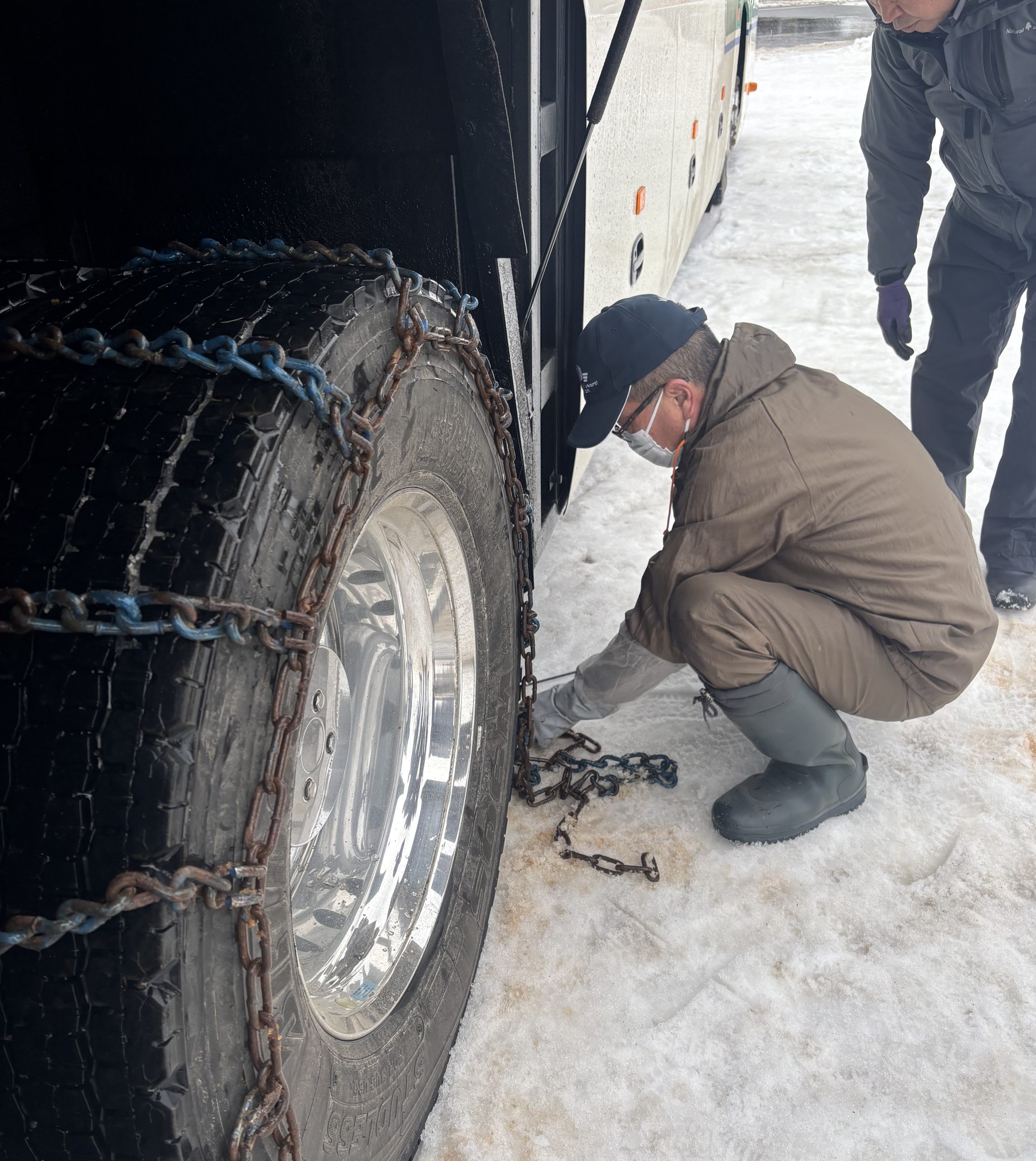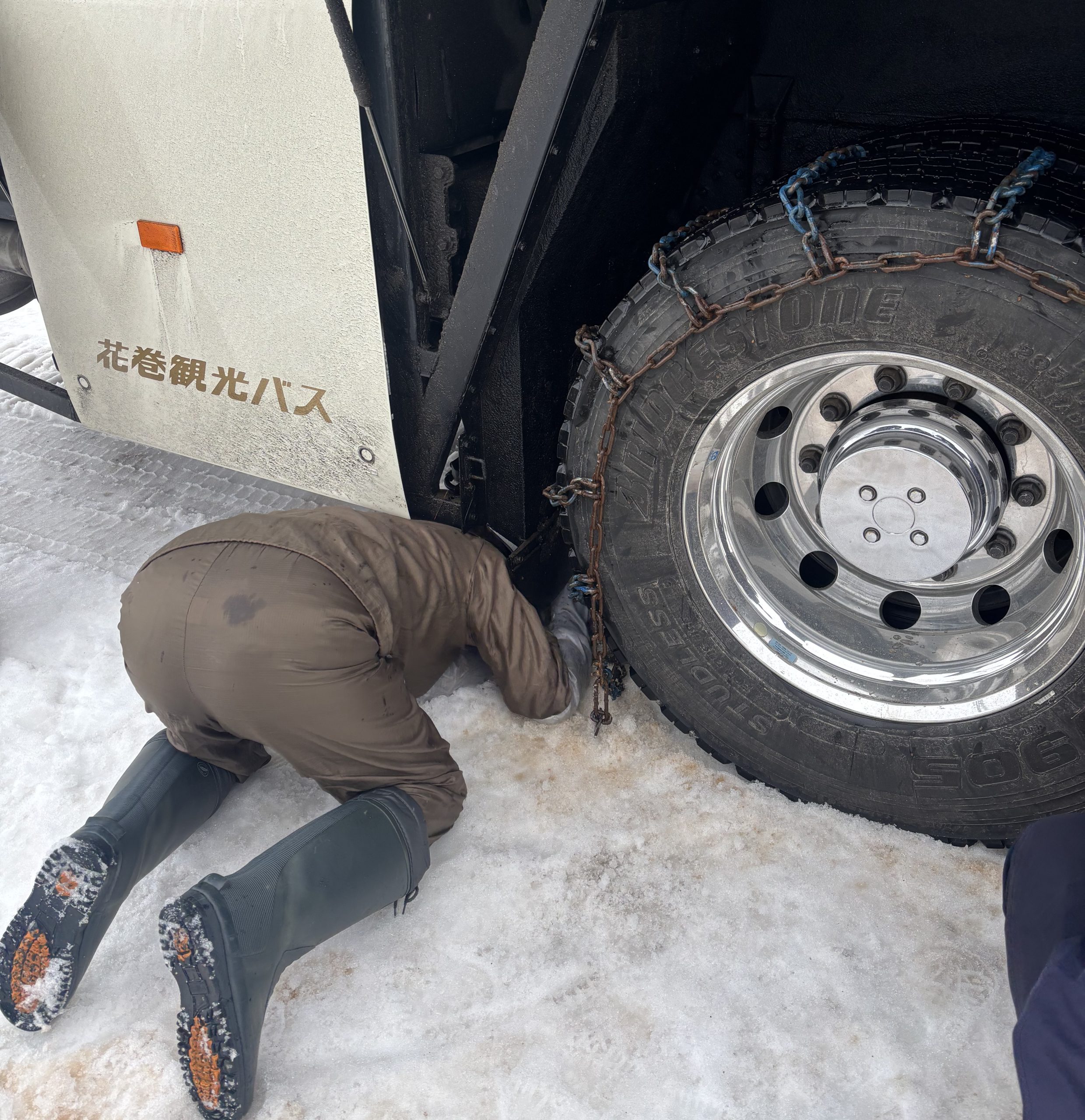 雪上訓練の実施 2025年1月7日 ブログ 日頃より花巻観光バスをご利用いただき誠にありがとうございます。 今シーズンは特に雪が多いです⛄ スキー場や雪の降るエリアへのご旅行のご依頼をいただいております。 そこで、新任乗務員を中心に雪上訓練を行いました。 先輩乗務員の運転技術の指導🚌 タイヤチェーン装着の訓練🚌 お客様への安心につながるよう、今回学んだことを活かしてまいります。
