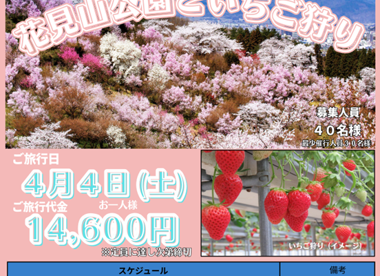 2025年11月11日 【はなかん旅倶楽部】 洋風こたつ列車と旬の三陸カニツアー 2/22(日)~23(月・祝) ご旅行日 2026年02月22日 ご旅行代金 33,400円~35,600円(税込) 詳細を見る